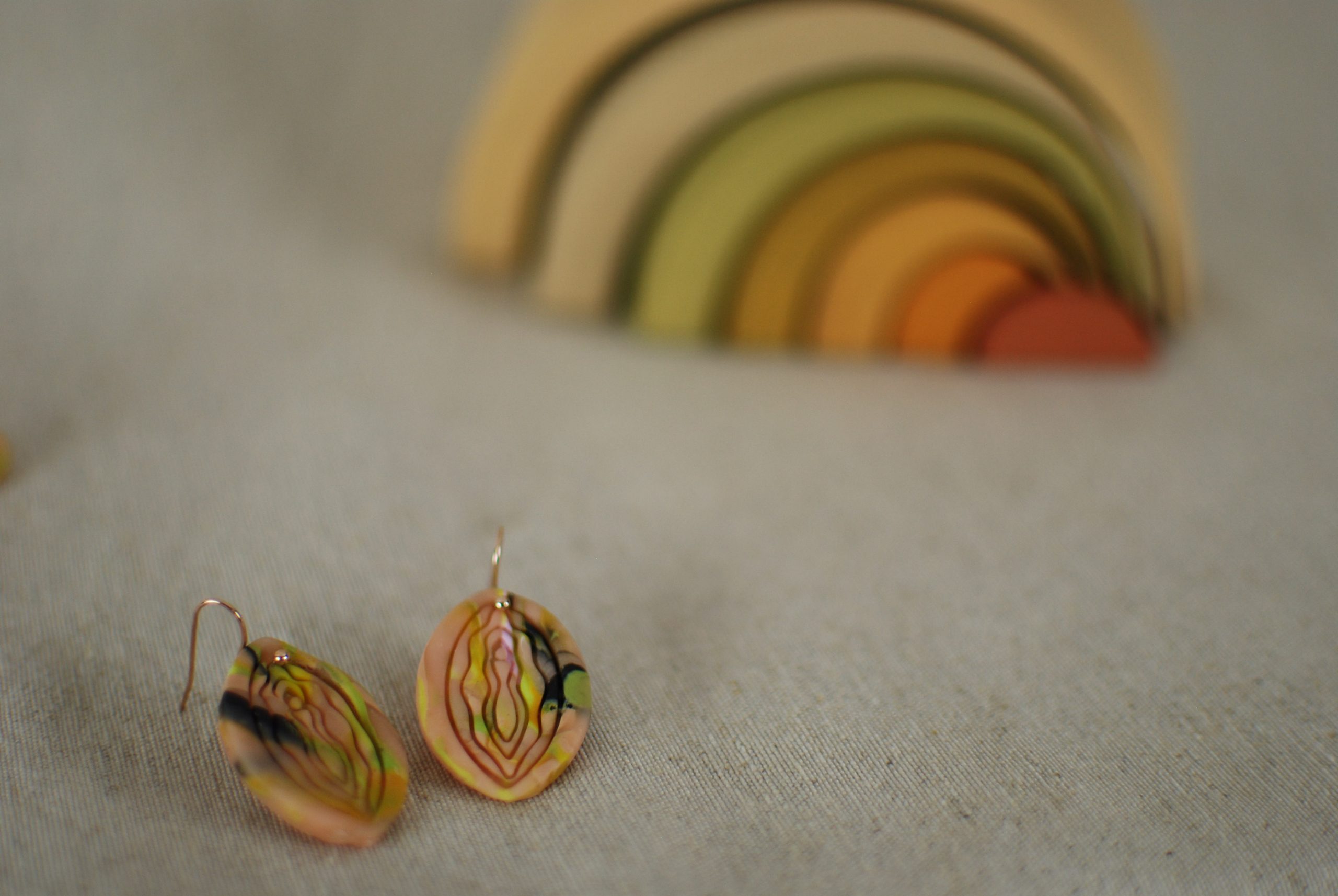 Pendientes de arcilla polimérica, con estampado y un diseño especial, seña de identidad de PUPU Studio desde el comienzo de esta aventura. Con ellos pretendía representar a la mujer en todo su esplendor, mostrando nuestra naturaleza más pura y física desenmascarando el pudor irremediable pero injusto asociado a ello.